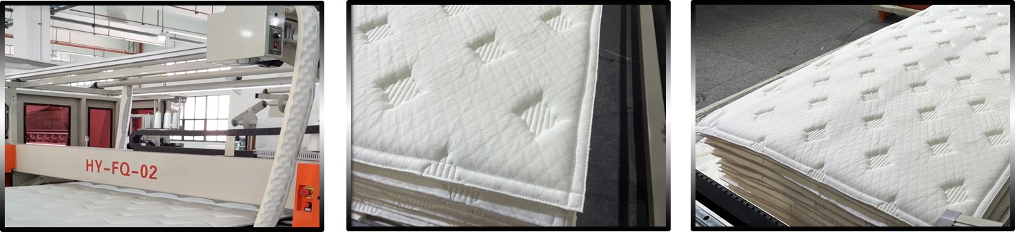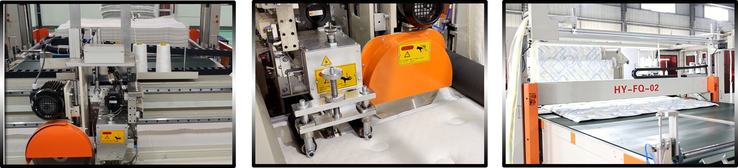 選裝組合:HY-D-1 疊料機 + HY-FQ-2四邊絎縫裁剪機 + HY-W-SJS-3 無梭多針絎縫機